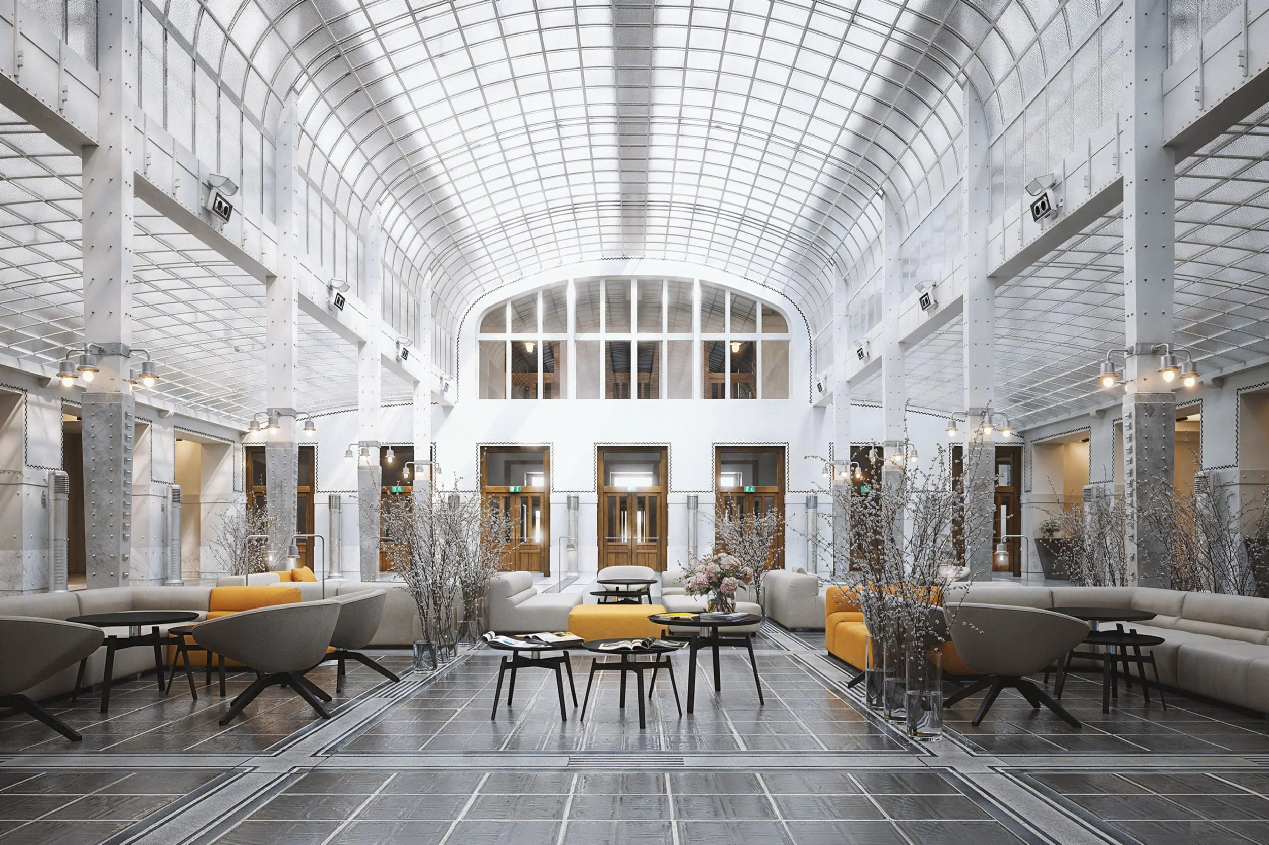 proposed changes to the iconic ‘Kassenhalle,’ whether it involved furnishings, scenario planning, or other modifications.